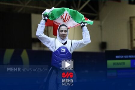دور افتخار دختر طلایی تکواندوی ایران با پرچم ایران