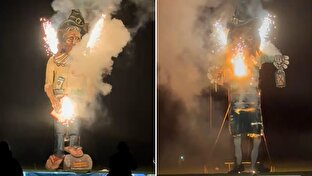 عروسک نماد نخستوزیر انگلیس در آتش سوخت + فیلم